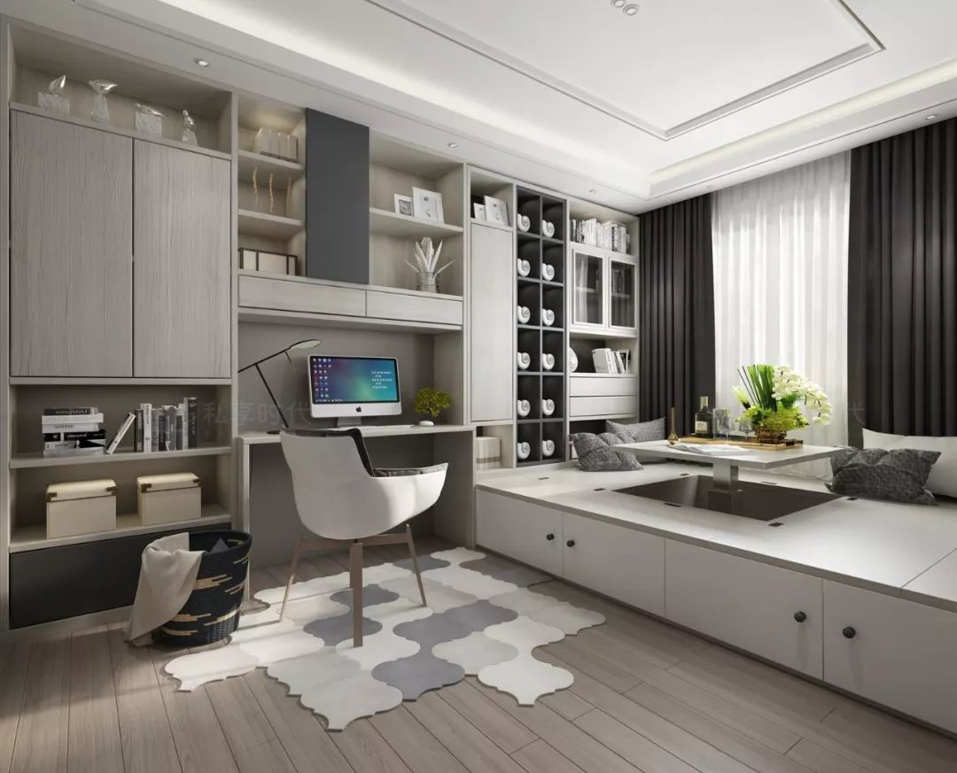 書房已然成為了家裝中的重頭戲。榻榻米可以讓您選擇一種最舒適的方式來閱讀。另外,孩子可以在榻榻米上休息玩耍,由于榻榻米的下層有物品作為阻隔,還可避免地氣涌入對孩子的健康造成不良影響。