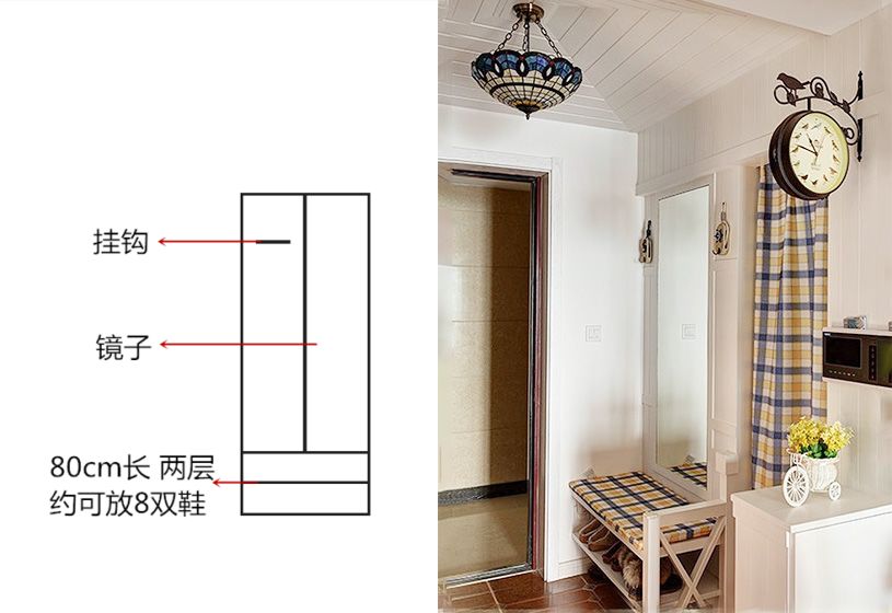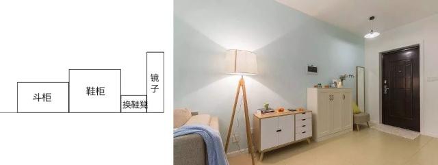 也就是說,如果你家過季鞋不放在玄關(guān)柜里,最小只需長80cm、寬30cm(由鞋子的長度決定)的區(qū)域,就能打造出一個(gè)功能相對齊全的玄關(guān)↓↓↓