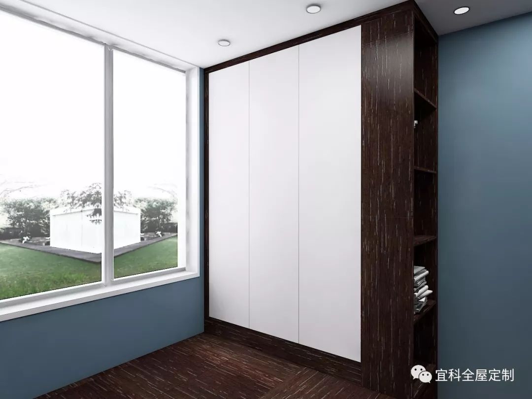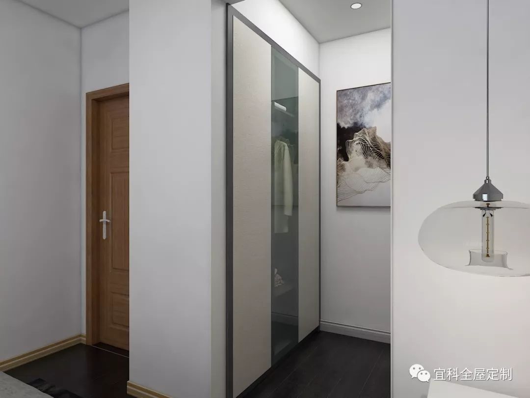 左右對稱的印尼布紋柜門設(shè)計(jì),營造出了很好的視覺效果。而中間通透的玻璃門設(shè)計(jì),則弱化了逼仄空間帶來的壓抑感。三扇柜門,開門方式均為彈開式設(shè)計(jì),快速利落的完成開柜、換衣系列動(dòng)作。一側(cè)墻面上的藝術(shù)掛畫,在匆忙換衣間隙,余光斜瞄幾眼,頓時(shí)讓一天的心情愉悅不少!
