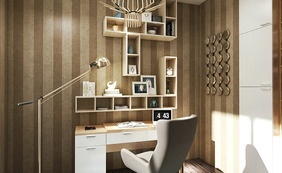 臥室中加上書桌的設(shè)計(jì),讓空間擁有了多重功能性作用。在裝修時(shí),可以利用床頭將房間的角落進(jìn)行延伸,同時(shí)搭配上定制的書桌,既滿足平時(shí)的休憩,也能讓房間充當(dāng)工作、學(xué)習(xí)區(qū)域。