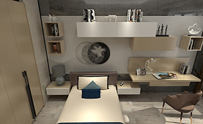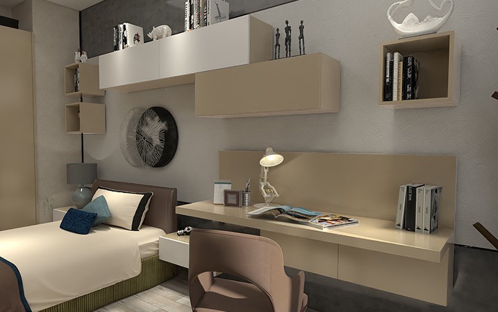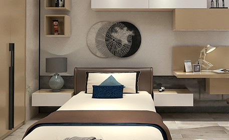 懸空式床頭柜,簡約不占地,視覺上給人以輕盈的簡約感。