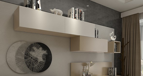簡單的幾排吊柜也可以奪人眼球,一高一低,雖簡約卻不簡單,免去了整體式的單調(diào),又增加了幾分錯落雅致。增強空間不說,還可增加收納功能。臥室整體以淺色系為基調(diào),白色與原木色結合,輔以其他深色過度,營造清新浪漫的就寢氛圍。