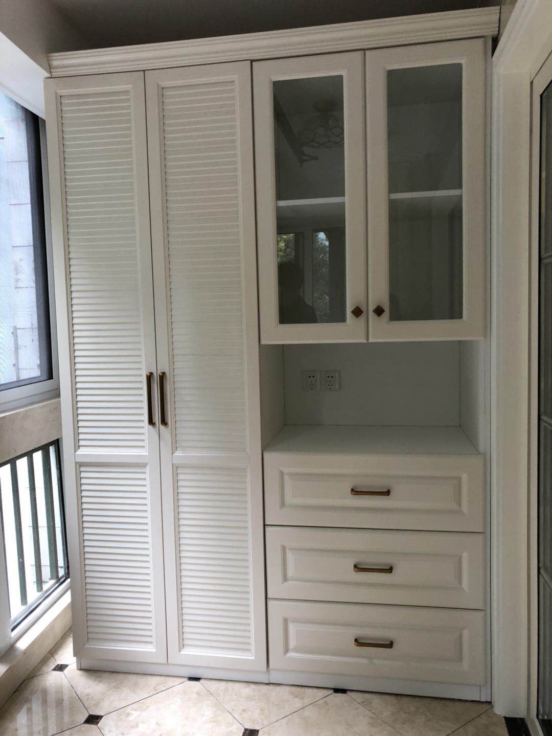 陽臺柜雖只是一處簡單的空間靜物,卻也因為匠心的設計而讓其成為陽臺的一道靚麗風景!整個柜體由三部分組成:一側(cè)精巧的小百葉柜面,賦予空間別樣的風情;由上下兩部分構(gòu)成的另一側(cè),上半部分采用通透的柜面設計,可用作趣味小擺件的展示,而下部抽屜式的柜體,將隨手拿放的小玩意有序歸納。