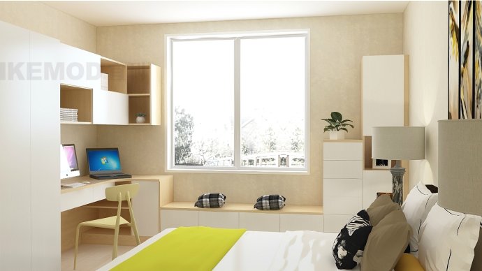 與主臥的沉穩(wěn)不同,這間為女兒準備的次臥則處處流露出年輕人的活力、朝氣。我們家具的剛裝完沒多久,客戶就住進去了,表示我們的家具沒味道。結(jié)合人體功能學的桌柜一體,從滿目的琳瑯,就能感受到其設計上的貼心與強大的收納功能。