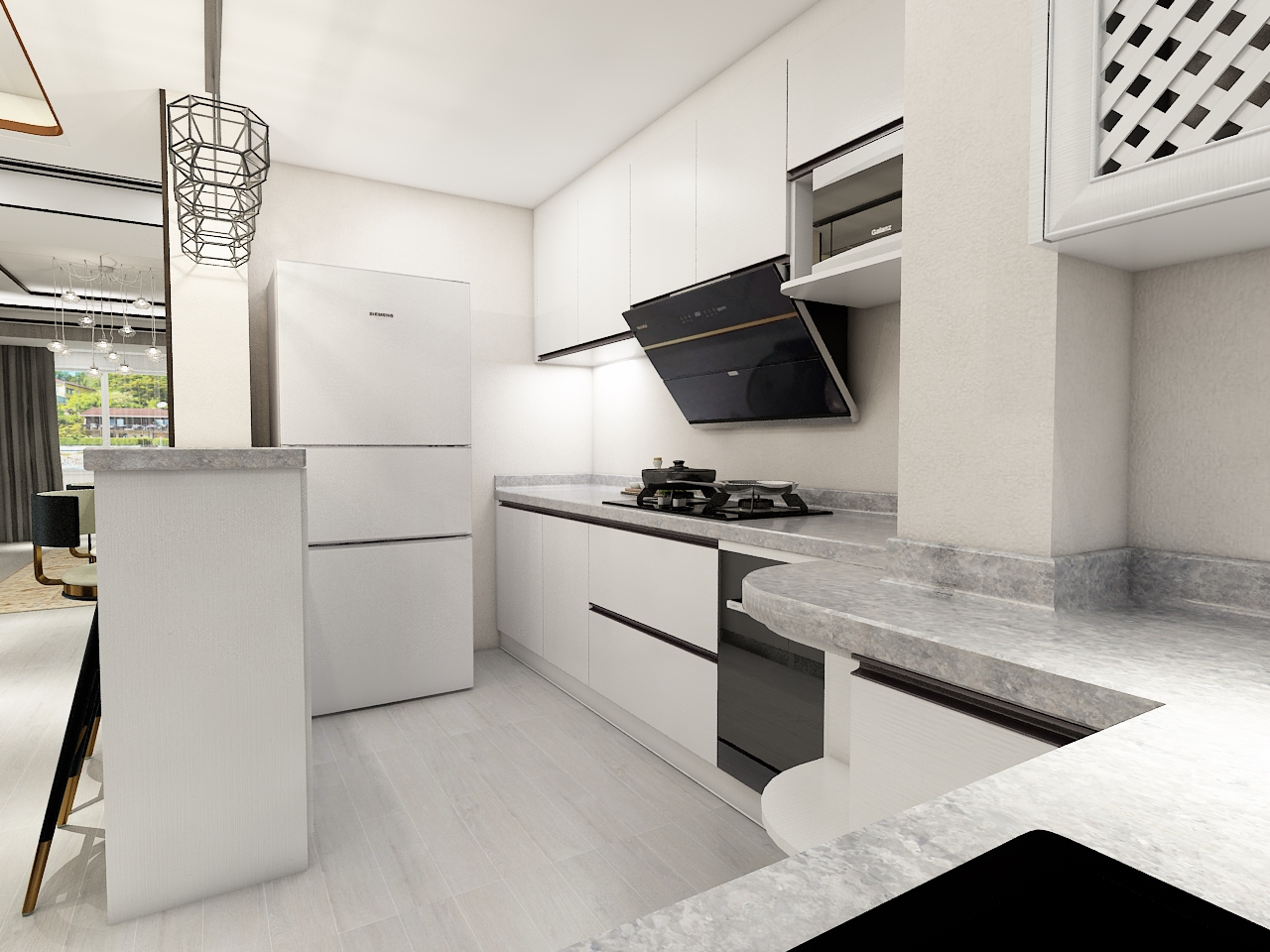 開放式廚房的出現(xiàn),改變了以往廚房完全封閉的模式,沒有框架的限制、視野更開闊,并且儲物力超強,給人一種通透、開闊的感官體驗,是提升家居時尚度的不二之選!