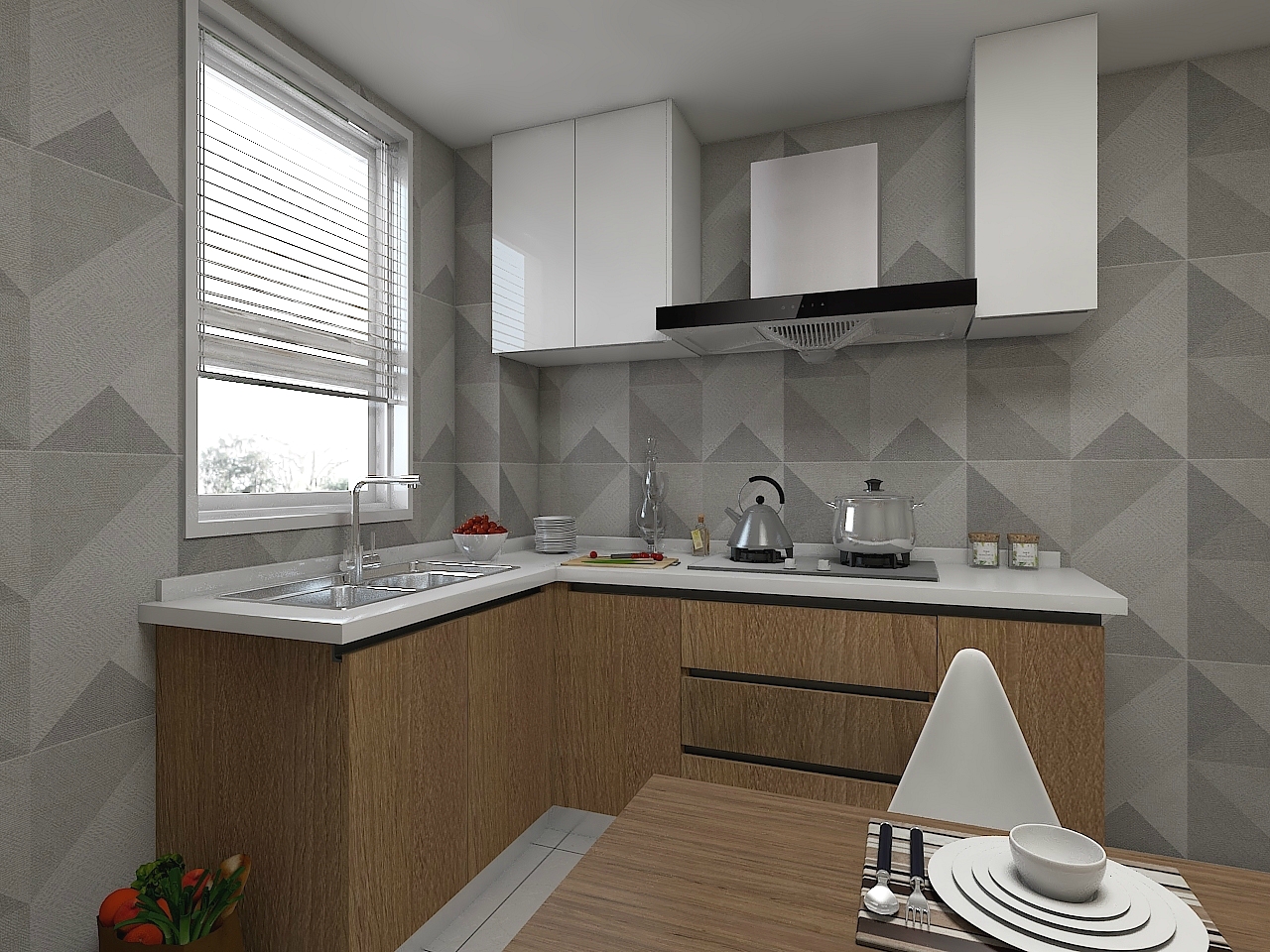 廚房作為充滿油煙的地方,在進行顏色搭配時,應(yīng)充分考慮到它的特點,選擇明度較高,灰度小的色系,例如白色、淺黃色等。這類顏色不僅對人的胃口有刺激作用,而且和可口的菜肴色澤比較相近,但不建議選擇色彩過深的顏色,容易讓空間產(chǎn)生雜亂感,不利于烹飪。
