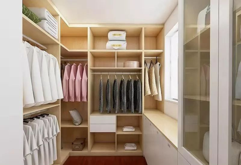 特征:戶型較大的房子還可以利用一個小房間打造成一個獨立的步入式衣帽間,衣物存取、換季衣物棉被疊放、平時梳妝打扮都可以在這里進行。
