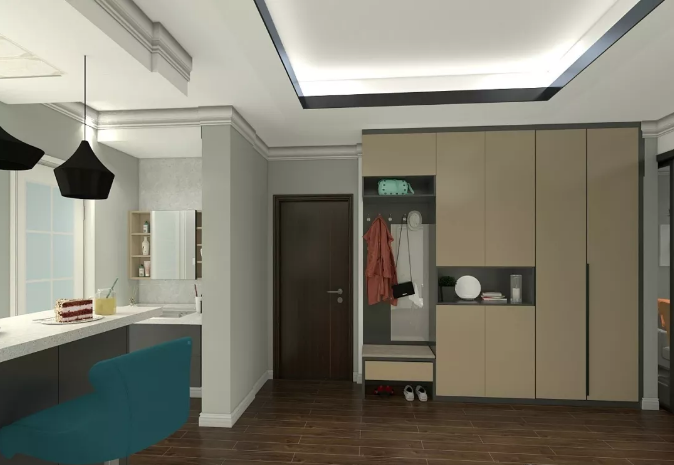 入戶是連接室內與室外的橋梁,在入戶處打造一個高柜,方便存放鞋子、外套、鑰匙、手提包等,這樣可以把雜物統(tǒng)統(tǒng)隱藏起來,還入戶一個清爽環(huán)境。