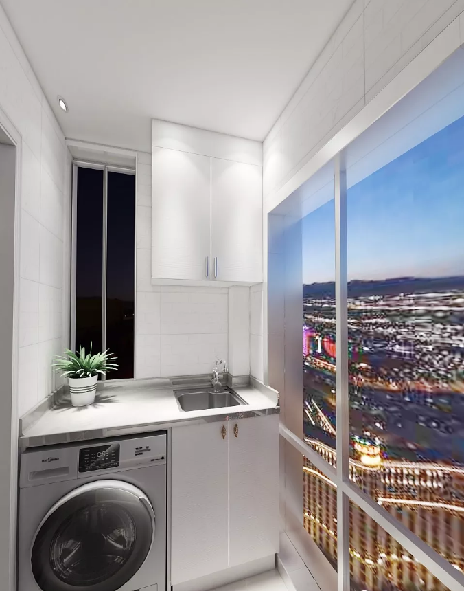 在陽臺的一邊或者整個空間定制一個儲物柜,收納空間倍增,相當于多了一間儲物室。