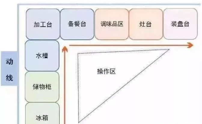 取材清洗處理食材烹飪裝盤,這里的動(dòng)線設(shè)計(jì)要考慮到如何操作方便、節(jié)約時(shí)間。