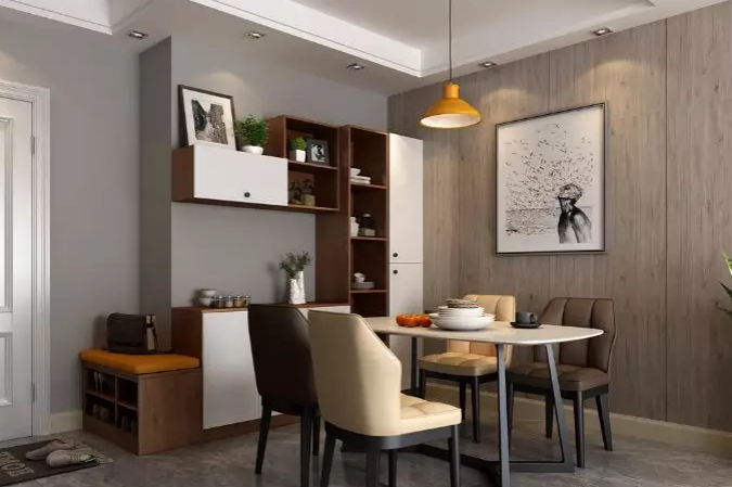打造舒心的餐廳,首先墻面和地面的瓷磚要與餐廳家具協(xié)調(diào),餐廳吊頂?shù)纳{(diào)要選擇比較柔和的,這樣用餐時(shí)才有好的食欲。