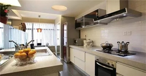國內(nèi)的建筑設(shè)計上廚房普遍偏小,這導(dǎo)致了操作臺面很容易會不夠?,F(xiàn)在一般家庭的小電器又多,電飯煲、豆?jié){機(榨汁機)都會占據(jù)廚房的臺面。所以,盡可能的增加廚房的操作臺面面積。