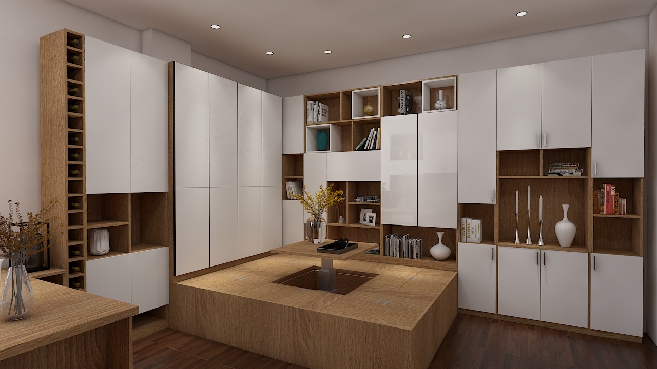 傳統(tǒng)的榻榻米,中央都有一個(gè)和室桌,用于擺放茶具招待朋友品茶。宜科衣柜提供了改良型的電動(dòng)升降桌,使用時(shí)慢慢升起,方便快捷,不使用時(shí)一鍵收起,與地臺(tái)平面嚴(yán)絲合縫地結(jié)合在一起。既能節(jié)約空間又能方便使用。品茗聊天,讓你可以不受坐姿所限,輕松享受每一刻。