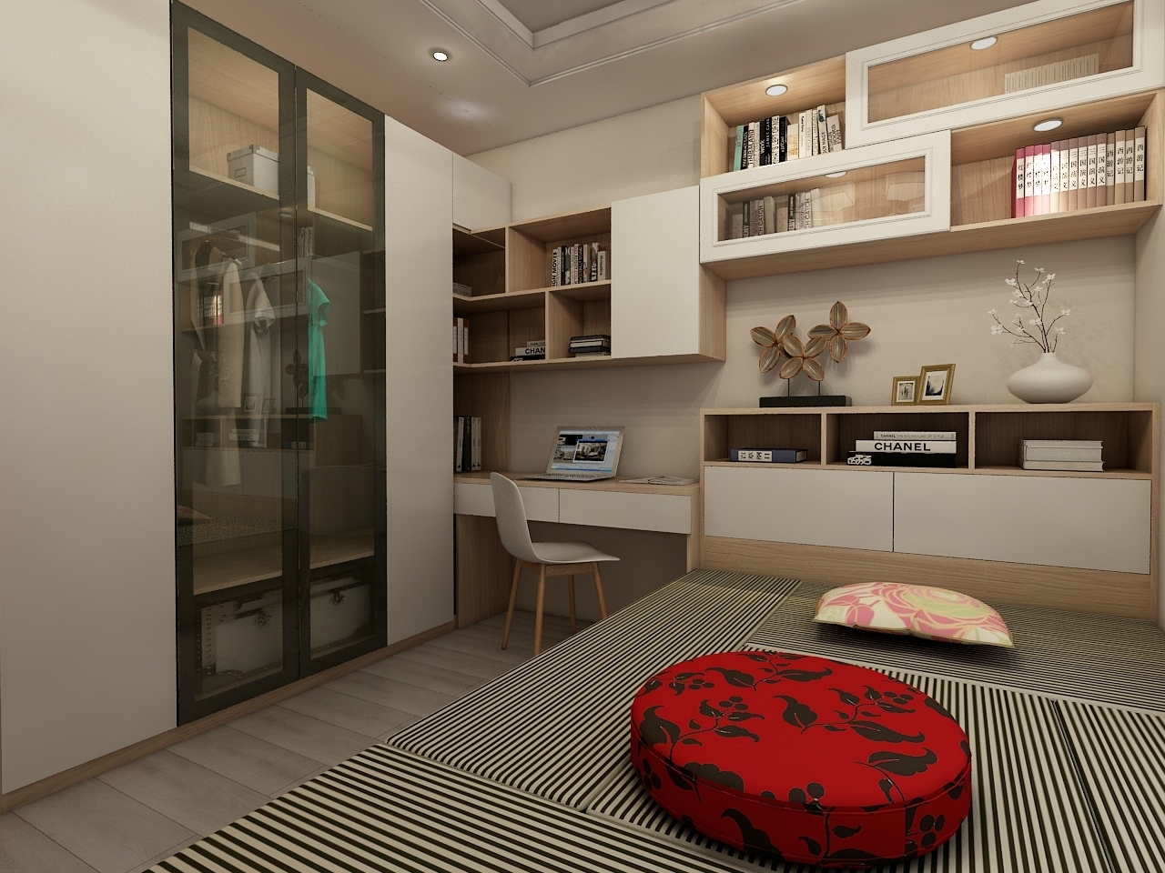 如果只是想作為儲(chǔ)物和次臥的榻榻米房,那么可以不用升降桌,平時(shí)放置過(guò)季的不常拿取物品,鋪上軟墊又可當(dāng)床睡覺(jué),非常適合沒(méi)有次臥的家庭。
