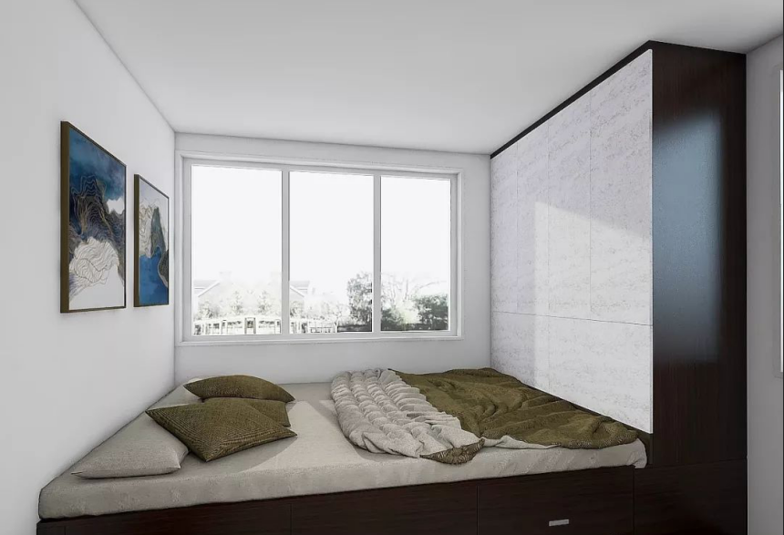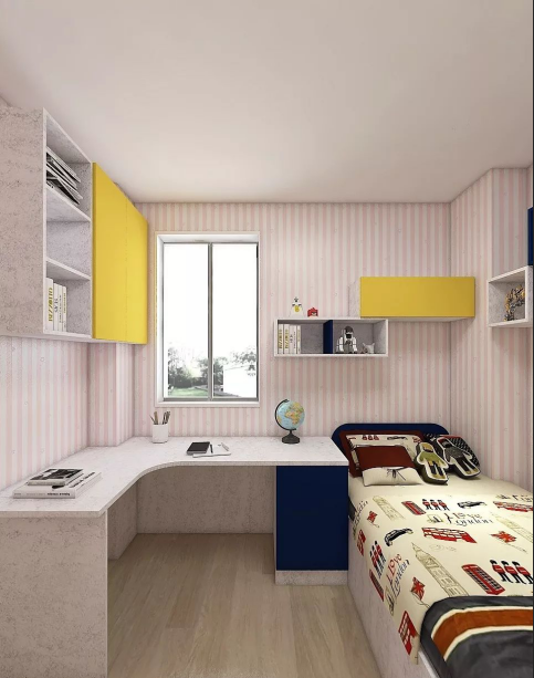 小房間可以因地制宜地做一些多功能設計榻榻米,或多種組合形式的柜體,實現(xiàn)書臥一體的空間。兒童房則可以用組合柜體形式,打造小孩休息、學習、娛樂一體化的多功能空間。