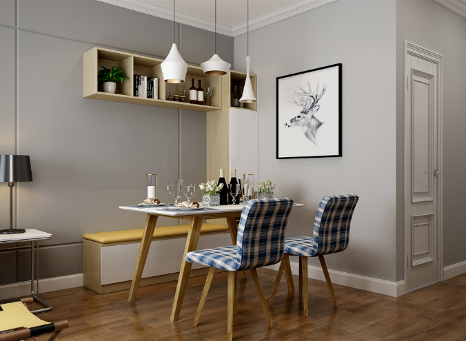 有些很小的戶型,連餐廳都放不下4張餐椅,這種情況餐邊柜又能派上用場(chǎng)了,餐邊柜改變以往的形式,加上卡座的功能,不僅可以收納,還可當(dāng)做餐椅來(lái)用,一舉兩得,這種設(shè)計(jì)比多放置兩張餐椅更省空間。