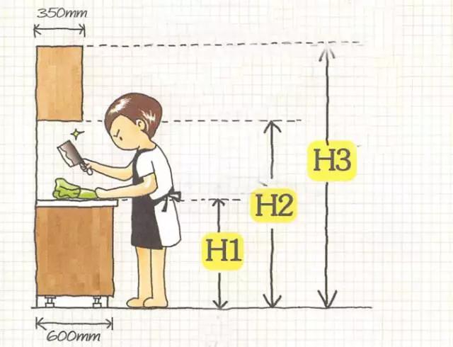 H1:操作臺(tái)高度=身高/2+50(毫米);快來算一下最適合自己的操作臺(tái)高度吧。