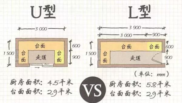 某個(gè)小廚房?jī)魧?500mm,如果是以下U型和L型布局的方案比較。