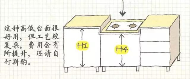 H4:灶臺(tái)的高度,一般來講與操作臺(tái)的高度一致,對(duì)于西餐的平底鍋是沒有壓力的,但是對(duì)于中式炒鍋,鍋的高度有50mm,而且高檔的炒鍋越來越重,這樣就非??简?yàn)矮個(gè)子的腕力,所以建議下降80mm。