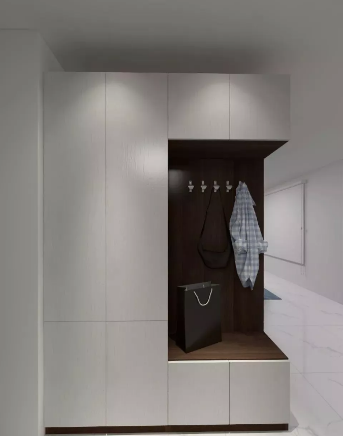 C型玄關是家庭玄關中較為常見的一類,造型簡潔,收納力max絕對是打造小戶型玄關的不二之選。