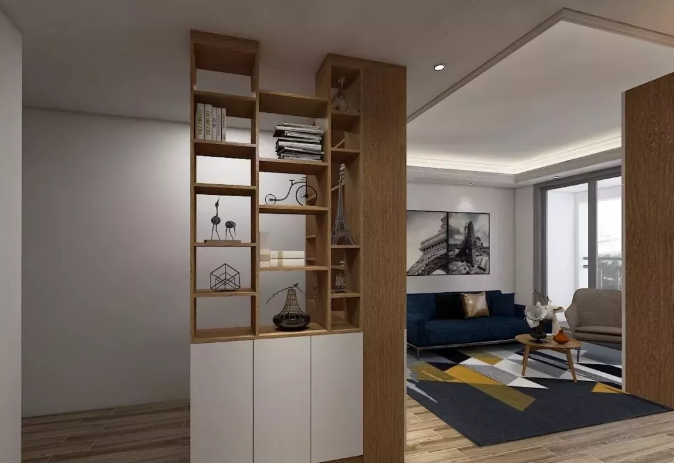 矮柜+隔斷多用于開放式客廳中,業(yè)主為了避免“開門見廳”的尷尬,既想保護私密又要顧及空間的通透感,隔斷式玄關再合適不過了。