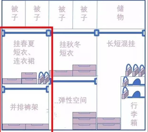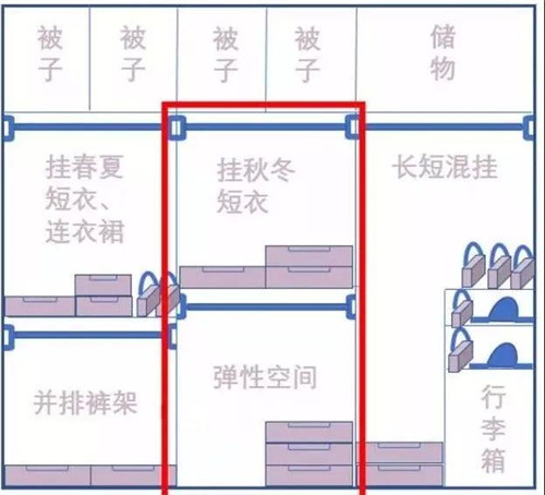 下方是彈性的區(qū)域,既能掛衣又能放抽屜或箱子之類的,看你自己的安排。