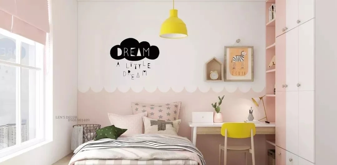 ▲女孩房:白色+粉色,讓房間整體溫暖柔和,少女心十足。如果覺得過于單調,可以用淡藍、明黃、粉紅、草綠加以點綴。
