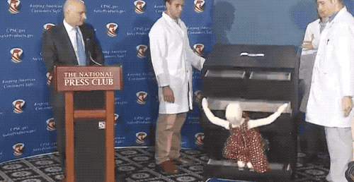 瑞典一對兩歲的雙胞胎在室內玩的時候攀爬柜子,結果柜子瞬間倒下。雖然因為柜子翻倒時剛好抽屜先撐住了地面,形成的三角區(qū)域,讓小孩躲過一劫。