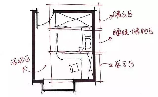 兒童房設計需要根據(jù)孩子不同階段的生活規(guī)律繪制最合理的兒童房功能分區(qū)。