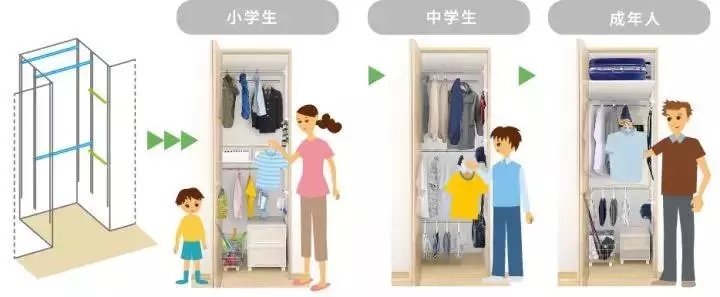 孩子的衣服會隨著年齡的變化發(fā)生。小時候疊起來收納的衣服比較多,長大了掛起來比較多,選擇可以分解和組合的衣柜,不僅長久耐用,還能引導孩子自己整理。