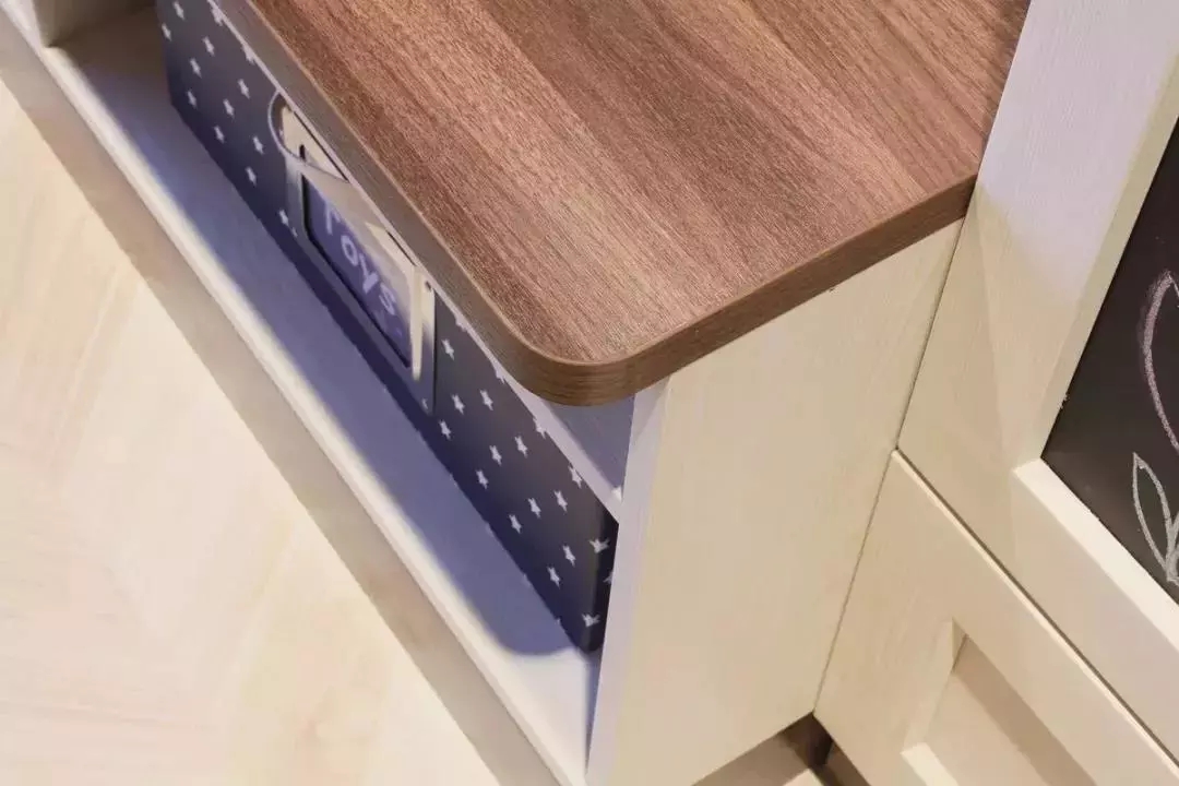 ②盡量選擇重心低的家具,避免柜體帶有有輪子、高腳的家具。為防止,孩子打開抽屜攀爬,也可以安裝抽屜鎖。