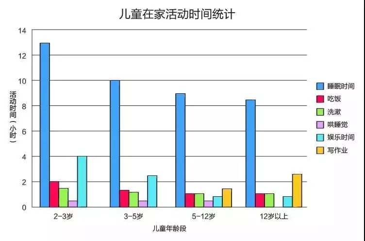 首先我們要弄清楚,孩子的時間都去哪里了?請看4個年齡段的孩子在家里的生活規(guī)律時間統(tǒng)計表(如下圖)
