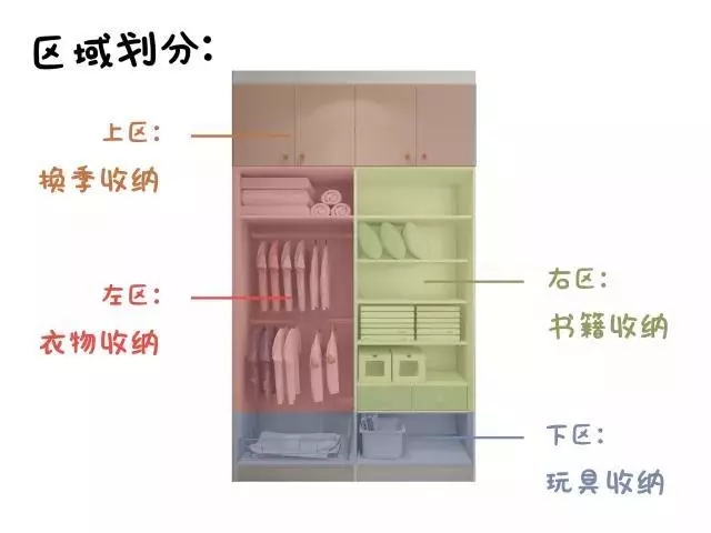 ▲多功能衣柜適合需要雜物多數(shù)量大的儲物需求。按區(qū)域劃分收納可以最大程度利用空間。衣柜左邊收納孩子的衣物,右邊收納書籍,下放收納玩具。