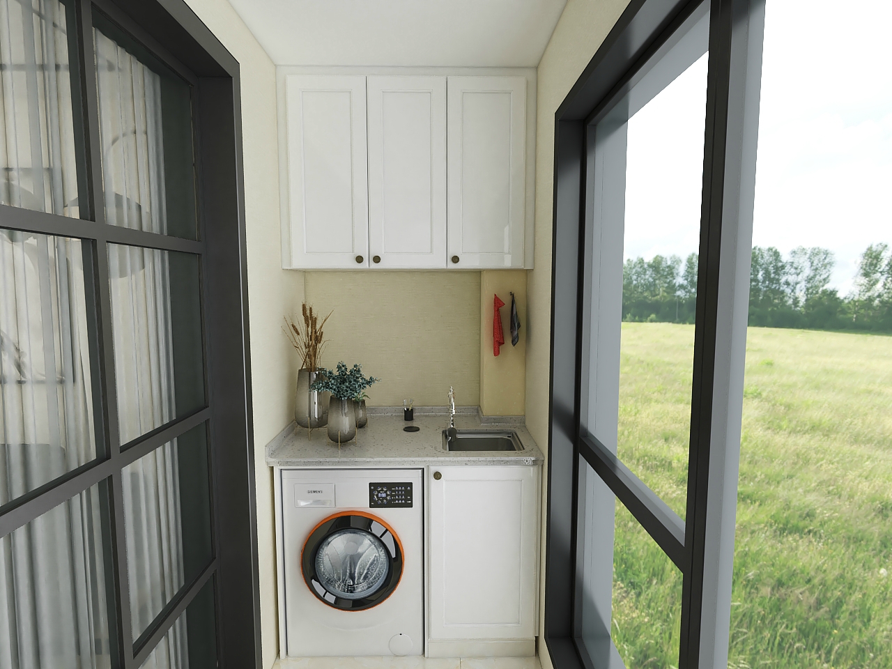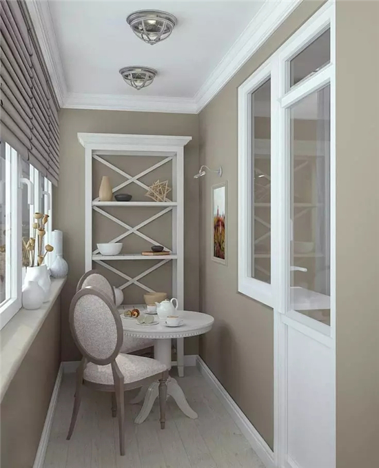 如果你想打造一個獨立的空間,建議隔斷。不要局限于陽臺的晾曬功能,花房、洗衣房、書房、儲物間、小餐廳、小廚房、小吧臺等功能空間都可以充分開發(fā)。