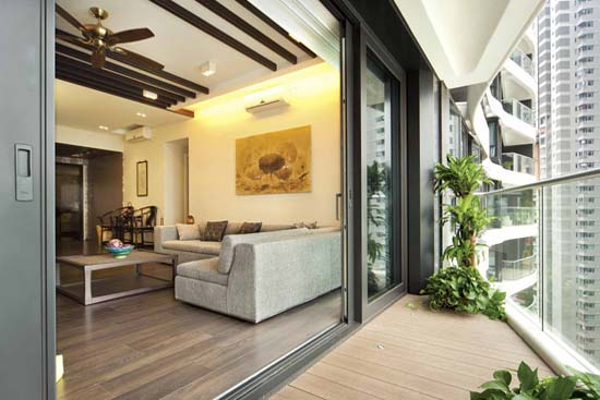 利用折疊門將陽臺和室內(nèi)隔斷,而玻璃的透明性并不會影響屋內(nèi)的采光,同時晚上能有效隔離噪音和溫差。